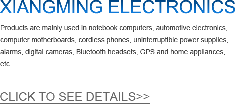 Products are mainly used in notebook computers, automotive electronics, computer motherboards, cordless phones, uninterruptible power supplies, alarms, digital cameras, Bluetooth headsets, GPS and home appliances, etc.